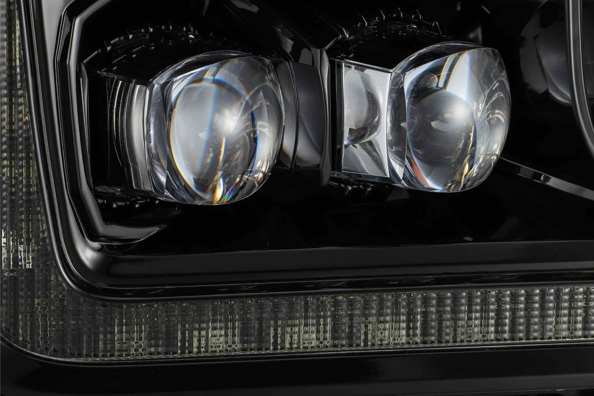 AlphaRex Is a relatively new brand in the automotive aftermarket industry. They've become known for building headlights that are unique in style, offer various color choices, and better than average construction quality. While (in our testing) they don't do as well as the slightly more expensive Morimoto XB LED headlights, they do offer good bang for the buck and certainly worth considering. If you're interested to see what else we've got in stock for your truck, use the buyer's guide on our website! AlphaRex Design Alpharex Nova Series Headlights for the Ford F150 use their signature 3D ice-cube projector lens system inside. Besides the horizontal NOVA projector row, They have also added a LED tube around the edge as DRL and sequential turn signal. The LED tube is not only used as switchback DRL and turn signal, it also has the activation light feature which is an animated lighting sequence when you unlock and lock your vehicle. These projector headlights have a quad projector design, with the outer 3 projector as low beam, and inner projector as high beam. Ice Cube Projector Technology AlphaRex integrated their patented Ice Cube 3D LED Projectors that are powered by Osram Black Flat LED Chips. The jewel eye projectors look great inside of the Ford F150 Nova Series Headlights. The projection cut-off line is perfect for American LHD regulation. Features: The AlphaRex Ford F150 Nova-series projector headlights come with switchback DRL, sequential signal light, and the signature activation light feature, which is a sequential light show when you unlock your car. Housing: The Ford F150 Nova-series projector headlights are offered with either a chrome, matte black, or shiny midnight black housing. The chrome housing gives your truck a stock housing look and match your truck if you have a lot of chrome accessories. On the other hand, the black housing gives your truck a sporty look and easily match with any color truck and front grill. Above all, the gloss/ jet black housing and mid-night black housing (all black housing with glossy finish) are their specially designed versions that has a combination of glossy looks mixed with the black paint, and it will give your truck a sporty and luxury look at the same time. Lenses: The AlphaRex headlight lenses are made of polycarbonate plastic. They also apply a layer of anti-fog agent on the headlights lens; thus, it allows better light output in extreme weather. In addition, they also apply another coating to protect the lens against yellowing and oxidation. SAE/DOT Compliance: Our Ford F150 Nova-series projector headlights are compliant with SAE and DOT FMVSS108 regulations. Moreover, all our products are certified to ISO-9000, ISO-9001 and ISO-9002. Most importantly, we inspect every detail of the lights to make sure we are satisfied and so are our customers. Installation: Our projector headlights are plug-n-play direct replacement for your truck. You can download the installation guide from the link in the listing above. Because these headlights have a DRL feature, you will need to apply the DRL module included in the package. No modification is required for installing these headlights; thus, our headlights are easily removable when you need to return or sell your truck and it will not void your factory warranty.What's Included